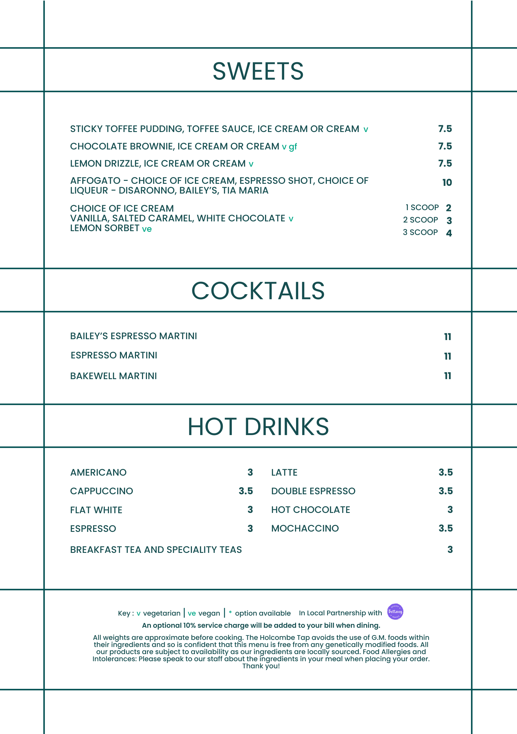 Should you have any specific requirements related to an allergy or intolerance, please specify at the time of your booking. All the food at Holcombe Tap is made fresh in-house daily, so adapting things to suit specific needs is normally possible and we will try our best to accommodate.